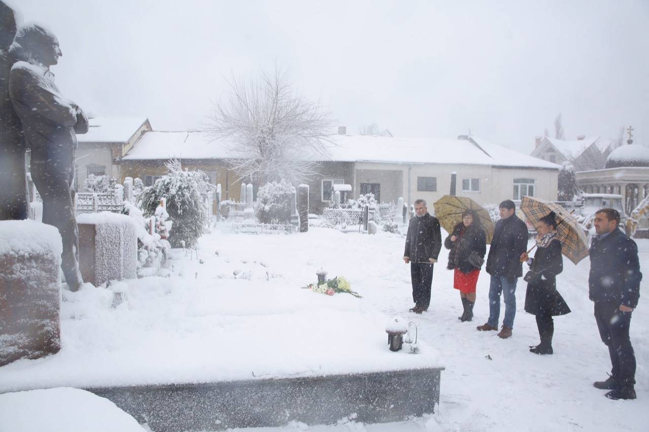VIDEO, FOTO // Grigore Vieru, omagiat la Chișinău: Flori la mormânt, poezii la bustul de pe Aleea Clasicilor