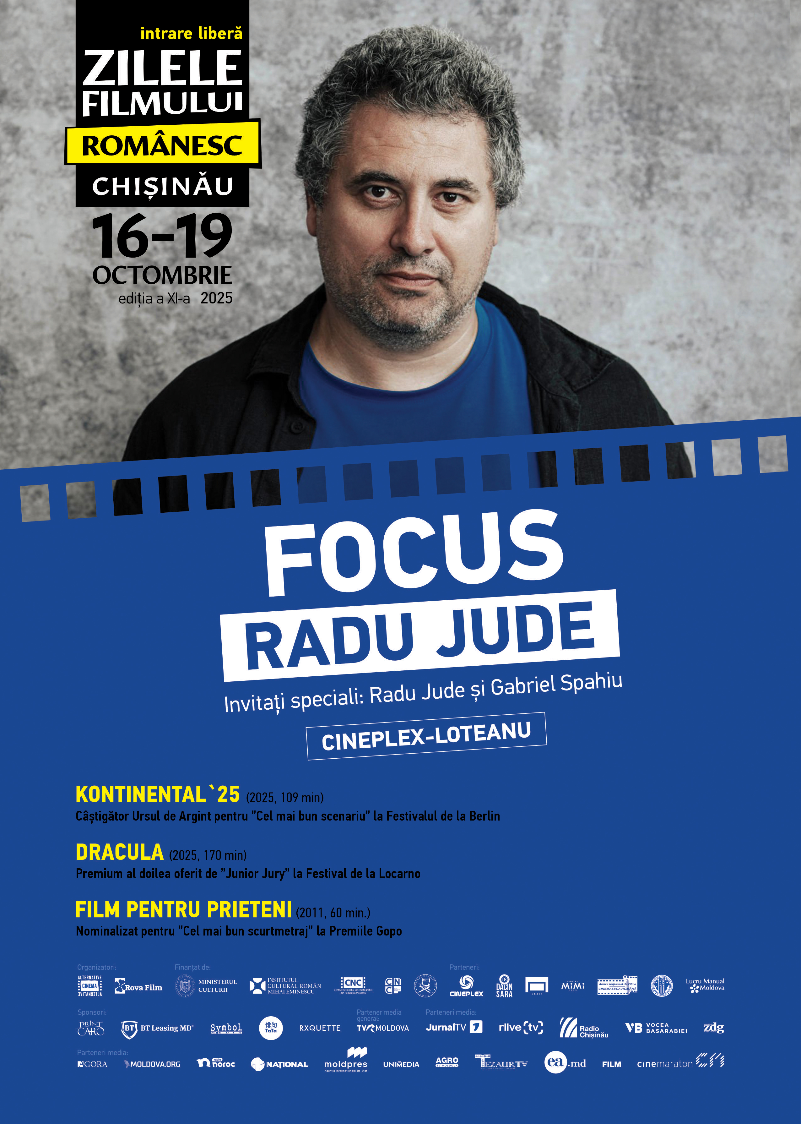 Secţiunea FOCUS din acest an îi este dedicată regizorului Radu Jude, care va fi celebrat prin proiectarea a trei filme: „Kontinental `25” (2025), premiat cu Ursul de Argint pentru cel mai bun scenariu Festivalul de la Berlin, „Dracula” (2025), care a făcut parte din competiţia Festivalului de la Locarno, şi „Film pentru prieteni” (2011). Proiecţiile vor fi urmate de câte un interviu video înregistrat cu regizorul Radu Jude, realizat special pentru publicul de la ZFR, dar şi de discuţii cu celebrul actor Gabriel Spahiu, care joacă în toate cele trei filme şi care va fi prezent la Chişinău.