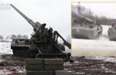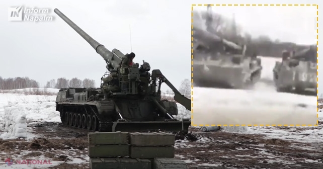 VIDEO // Imagini cu tunuri masive de artilerie ce pot lansa proiectile NUCLEARE, surprinse la circa 16 kilometri de Harkov