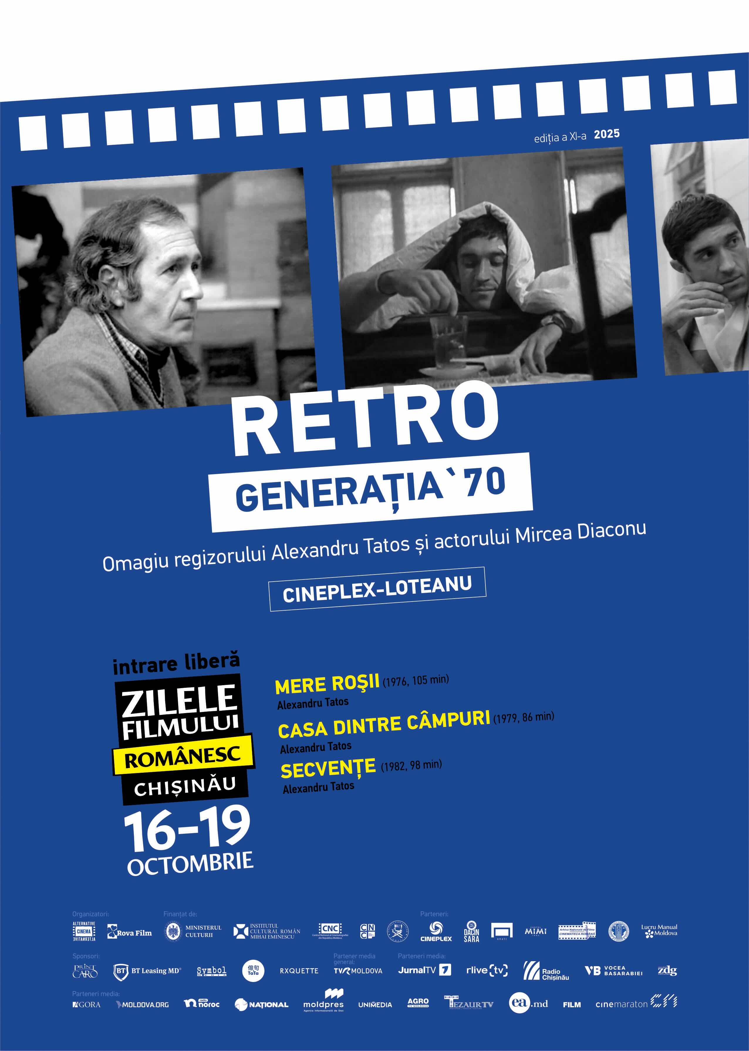 Marele cineast Alexandru Tatos va fi omagiat printr-o retrospectivă de trei filme la Zilele Filmului Românesc la Chişinău. Toate cele trei pelicule - „Mere roşii” (1976), „Casa dintre câmpuri” (1979) şi capodopera „Secvenţe” (1982) - îl au în distribuţie pe regretatul Mircea Diaconu, plecat dintre noi la finalul anului trecut, aşa că secţiunea RETRO îl comemorează şi pe marele actor.