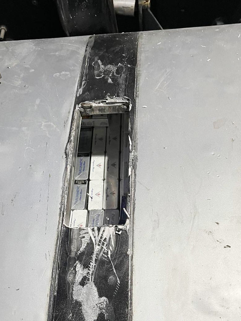 Suspiciunile vameșilor au fost confirmate după ce aceștia au demontat spațiile special adaptate din cele două rezervoare pentru combustibil, din care au extras 7 590 de pachete de țigări sai 151 800 de țigarete de diverse mărci.