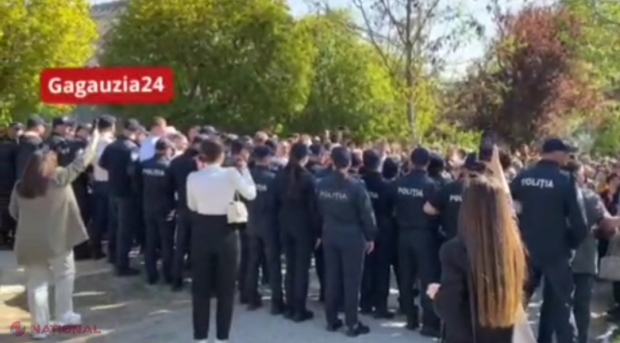 În fața Universității de Stat din Comrat, acolo unde șefa statului are o întrevedere cu aleșii locali din Găgăuzia, au fost aduse zeci de persoane, care au încercat să pătrundă în instituția de învățământ.