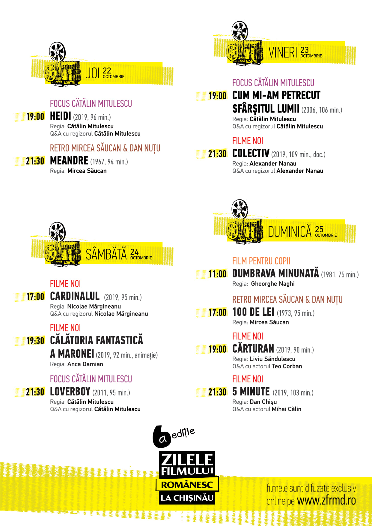 ZFR vor debuta joi, de la ora 19.00, cu filmul „Heidi” în regia lui Cătălin Mitulescu, iar la 21.30 veți putea urmări „Meandre” în regia lui Mircea Săucan.