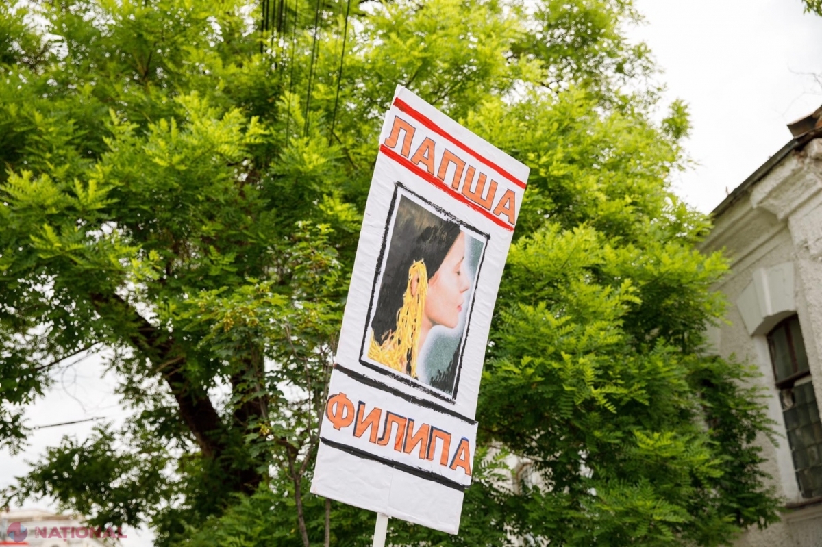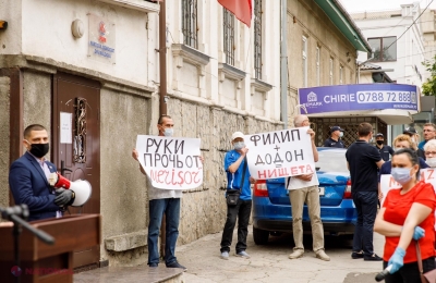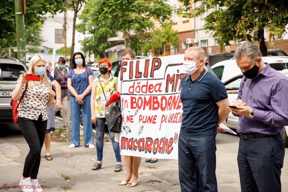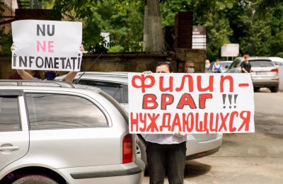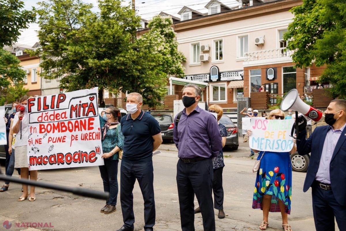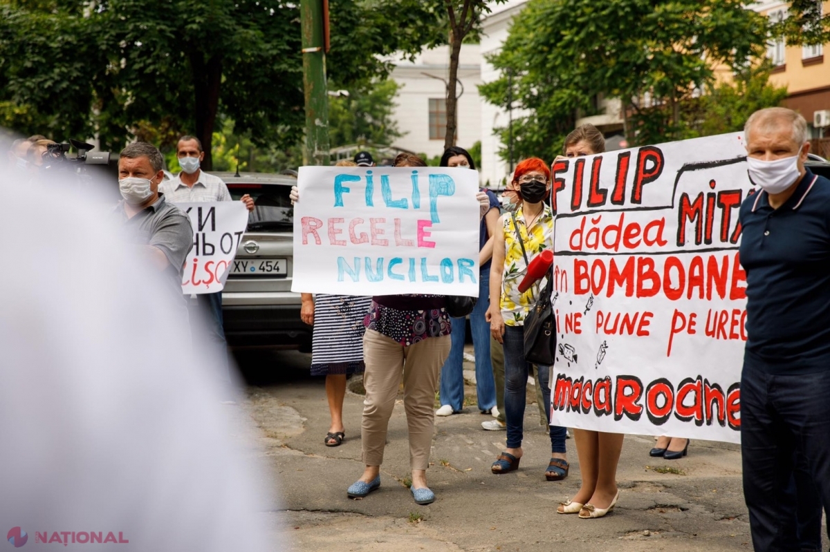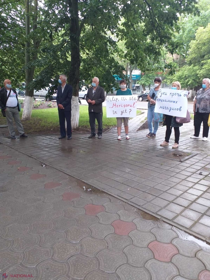 Deputați ai Partidului „ȘOR”, consilieri municipali, dar și simpli cetățeni, beneficiari ai magazinelor sociale au scandat lozinci în susținerea acestui proiect - „Filip - rușine”, „Jos mâinile de pe magazinele sociale”, „Jos Filip, jos Dodon!” și au afișat pancarte cu mesaje similare „Filip+Dodon=sărăcie”, „Filip, regele nucilor”, „Filip dădea mită în bomboane și ne pune pe urechi macaroane”.