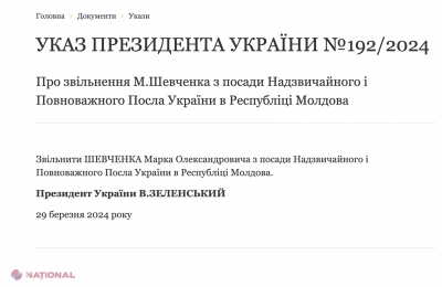 Ambasadorul Ucrainei în R. Moldova, Marko Șevcenko, a fost revocat din funcție printr-un decret semnat astăzi de liderul de la Kiev, Volodimir Zelenski, în legătură cu expirarea mandatului de patru ani.